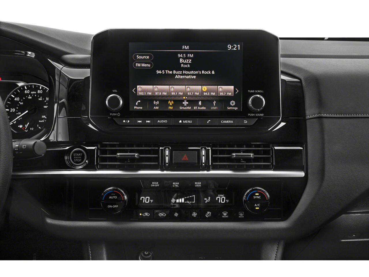 - Radio w/Seek-Scan, Clock, Speed Compensated Volume Control, Aux Audio Input Jack, Steering Wheel Controls and NissanConnect External Memory Control
